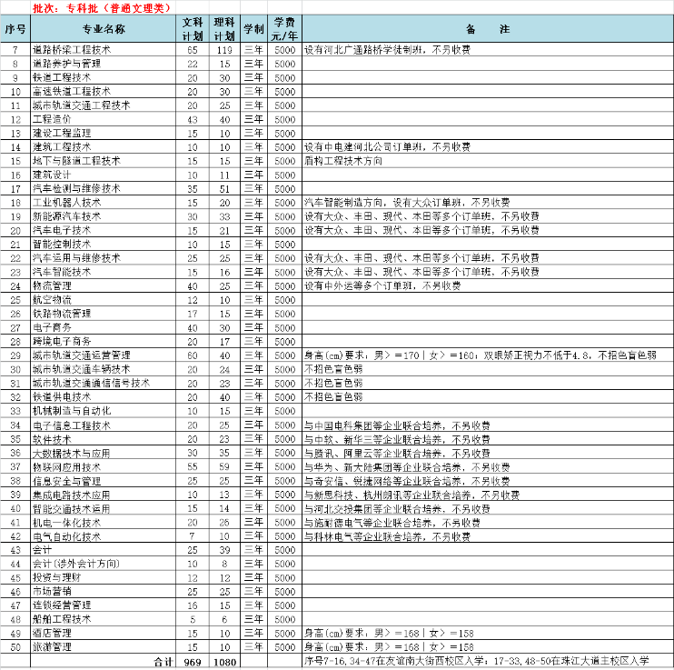 河北交通職業(yè)技術(shù)學院2022年省內(nèi)招生計劃