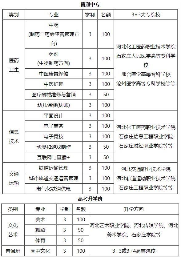 石家莊新希望中專學校2024年招生簡章發(fā)布,石家莊新希望學校招生計劃設有藥學類、交通運輸類、IT類、經濟管理類等5個系。比較熱門的特色專業(yè)有中藥、藥劑、中藥材鑒定、中醫(yī)傳承醫(yī)學、民航運輸、高鐵乘務、鐵路維管、機電、測量測繪、平面設計、大數據、VR虛擬現(xiàn)實全景影視、全棧式軟件開發(fā)設計、學前教育、職業(yè)教官、電力工程等20多個。